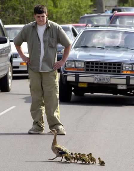 «Ona o'rdak va bolalari bilan katta yo'lni kesib o'tishi»